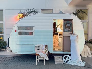 • We provide the full retro camper Photo Booth setup, staff, props, and branding.